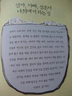 밥의 소중함을 깨닫게 되고 우리 것이 좋은 것이라는 걸 다시 한 번 깨닫게 되었답니다.