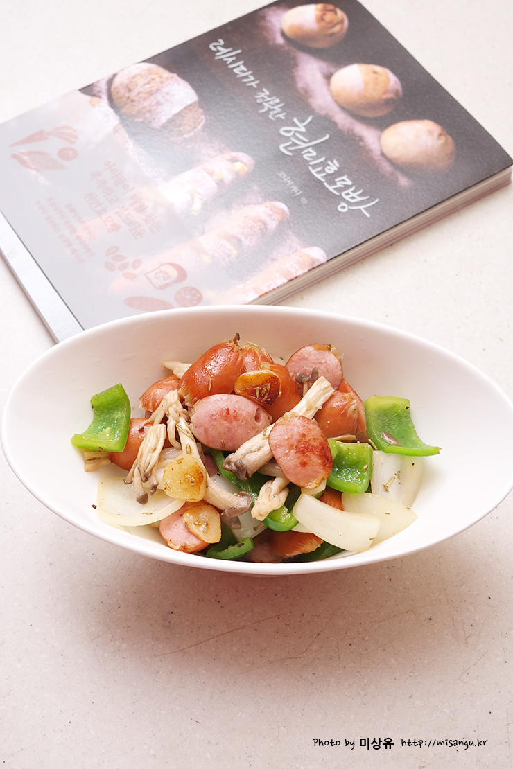 나와 있던 버섯 소테를 약간 응용해서 소세지 소테를 만들었습니다.