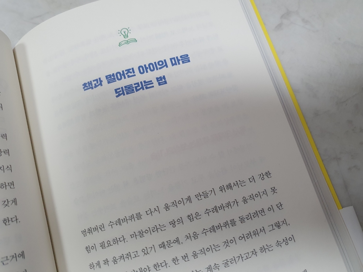 정말 제가 공감하는 부분이었는데요, 아이가 책읽기를 싫어한다면 일단, 책보다 재밌는 요소를 치우는 게 필요합니다. 예를 들어 유튜브, TV 게임 등 재밌는 자극이 없어야 책과 가까워질 수 있다는 것이죠. 그래서 책읽는 습관이 잡히기 전까지는 집안 환경을 책과 가까워 지도록 신경써야 해요.
