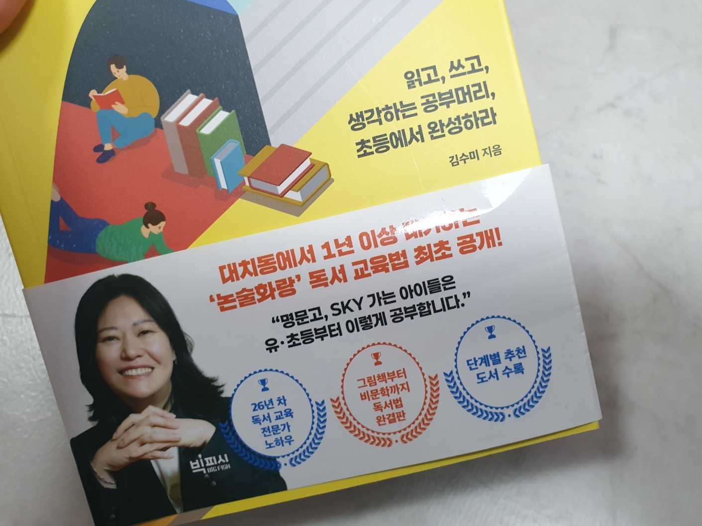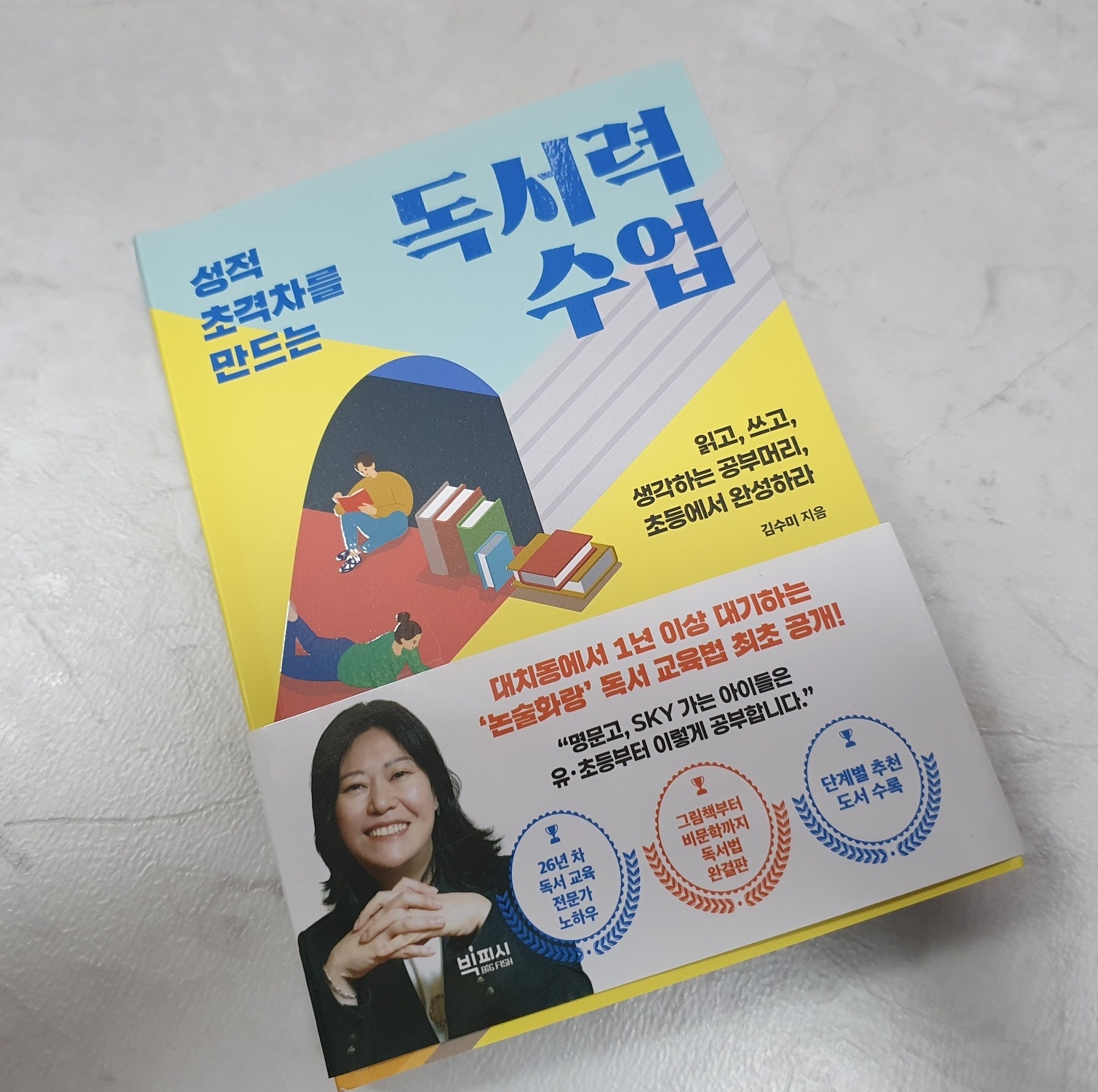 이 책은 26년차 독서교육 전문가이자, 대치동에서도 1년 이상을 대기해야 한다는 "논술화랑"의 대표 김수미 선생님이 쓰셨어요. 이 분은 유 초등 시기에 독서력을 차근차근 쌓은 아이들이 중 고등학교때 공부 포텐을 터뜨리며 성적 급상승을 시키는 모습을 많이 보셨다고 합니다. 그만큼 독서 교육이 아이의 공부력에 지대한 영향력을 끼치기에 독서 교육에 대한 구체적이고 효과적인 방법을 알려주는 안내서를 내셨다고 해요.