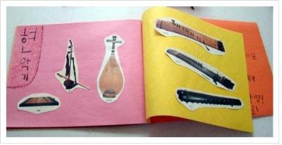 아이와 함께 국악 악기책 만들기를 해보았다. 먼저, 국악기의 종류를 알아보고, 악기별로 관악기, 현악기, 타악기로 종류를 나눈 후에 악기 그림을 오려서 붙여서 만들어보았다. 분류도 해보고 각각의 모습도 살펴보고 이름도 알아보는 유익한 시간이였는데, 악기이름을 알아보던 중에 현악기 중에 슬과 금이라는 악기가 있는 걸 보더니 무지 재밌단다.^^ 같이 있으면 슬 금 슬 금 이라나, 하하. 그리고 이렇게 우리나라 악기의 종류가 많은 줄 몰랐다면서 놀라기도! 역시, 아는 만큼 보이고 관심을 쏟는 만큼 애정도 생기는 법.^^