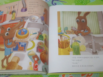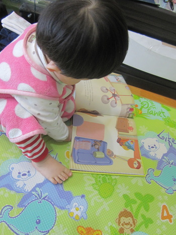 아이가 책을 보다가 책에서 다람쥐가 솔방울을 먹는 모습을 보고는 주워온 솔방울을 찾습니다.