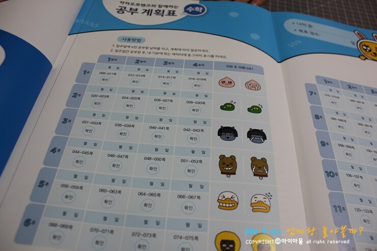 먼저 우공비 교재 세트를 사면 준다는 카카오프렌즈 우공비 달력에 꼼꼼하게 기록합니다.
