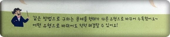 기본 문제를 아무리 잘 풀어도 문제의 유형만 살짝 바꾸면 어려워하는게 아이들이더라구요.