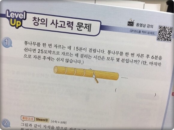 창의 사고력 문제에 동영상 강의 QR코드가 있어서 한 번 도전해 봤어요.