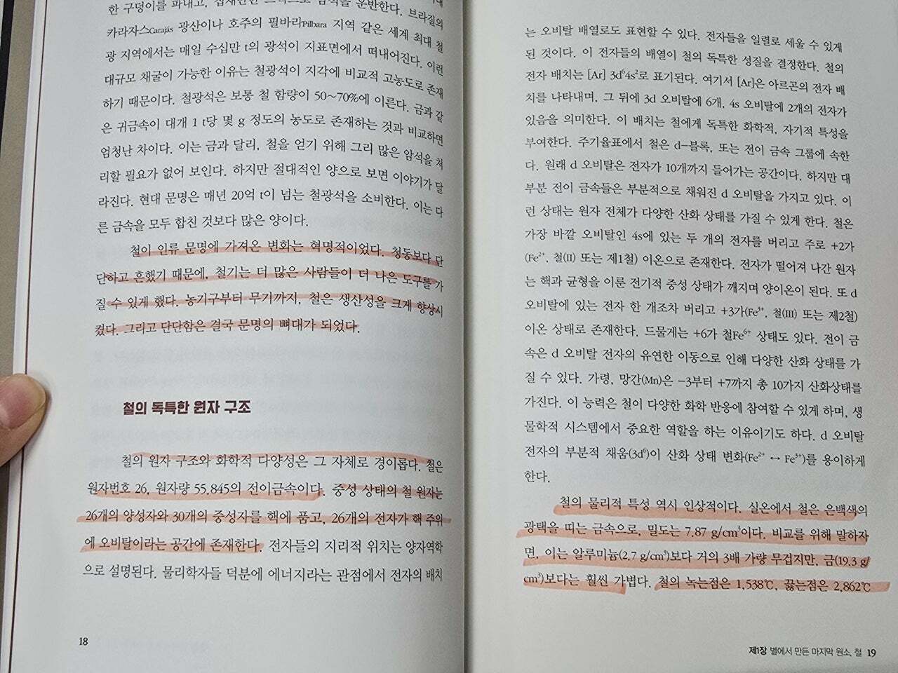 철의 원자 구조를 알게 되고, 철의 원자번호 원자량의 전이금속이란 사실도 책을 통해 한 번 되짚어주니 실로 재미를 던져주어 호기심과 관심을 가지고 책을 읽는데 몰입하게 된다.