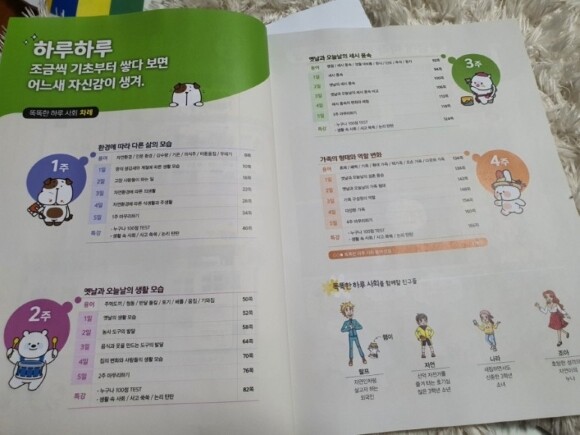 요즘은 학교 수업 시수가 예전처럼 꽉차지도 않은데다, 아이들 수업 부제로 인해 개념 잡기도 어렵고, 수업 공백이 큰만큼 개념을 확실하게 잘 잡아줄 수 있는 똑똑한 하루 사회로 뿌리를 잡아주면 좋겠다고 생각되네요.