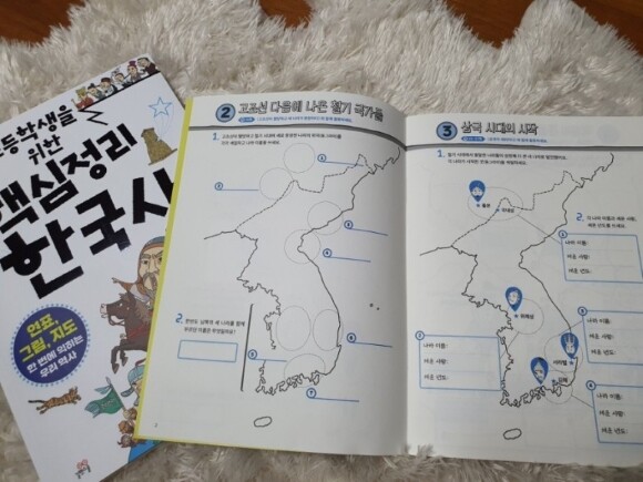 또 하나 더! 바로 백지도 워크북이 있어서 핵심 키워드 넣기나, 영토 색칠하기, 세운 사람, 년도까지 아이와 함께 해보면 좋을 듯 싶어요.