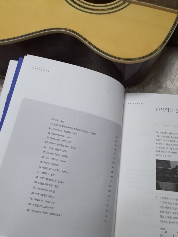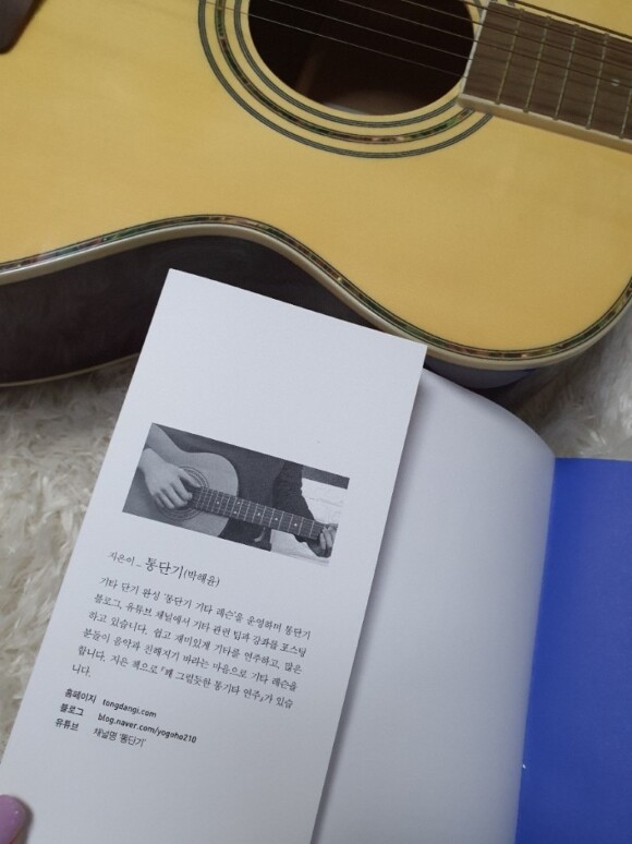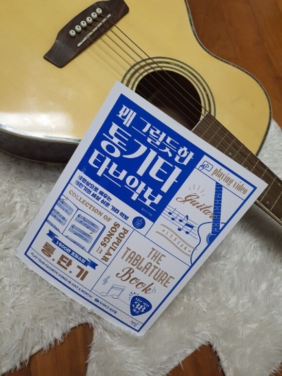 이 통기타 책의 특징은 바로 타브악브로 통기타를 쉽게 칠 수 있도록 만든 악보라는 게 특징이랍니다.