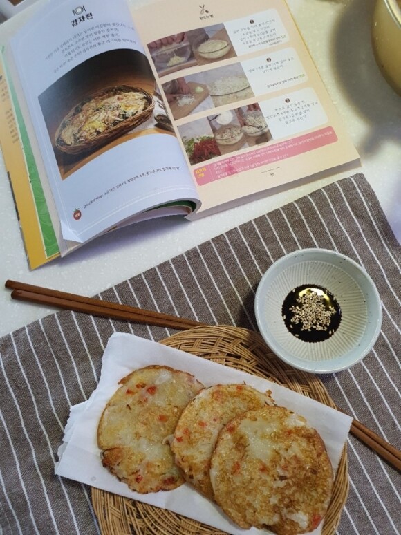 항상 감자전 만들면 흐늘흐늘하고 불조절 안되었는데 우앙~ 내가 감자전을 이렇게 쉽게 만들줄이야.