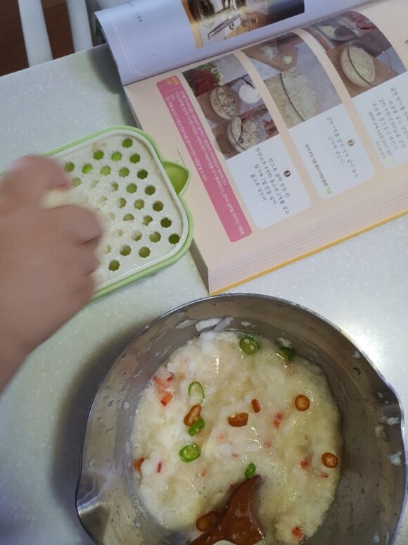 휴일 오후 아이 간식 겸 아이랑 함께 강판에 갈아 만들었는데,