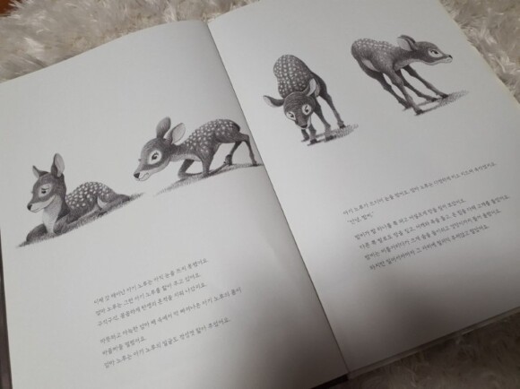 책 그림만으로도 너무 어여쁘고 봄,여름, 가을, 겨울 사계절이 함께 하는 아기 노루의 이야기를 따라 성장스토리를 느껴볼 수 있었네요.