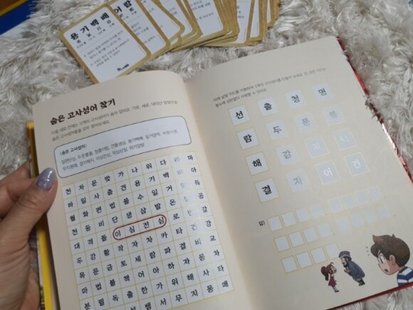 넷째, 한 챕터 끝날때마다 숨은 고사성어 찾기나, 고사성어 초성찾기, 고사성어 다시 보기 등으로 반복학습을 통해 고사성어 찾는 즐거움을 높였네요.