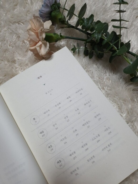 특히 작가는 영국에서 자라 영국ㄱ에 피는 꽃들을 가지고 사계절로 나뉘어 구성했다고 해요.