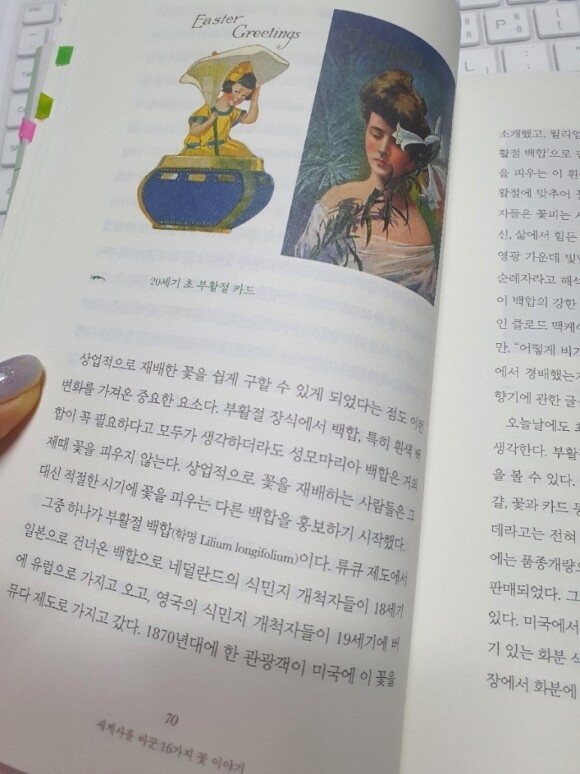 20세기 초 부활절 카드에 선보인 백합화가 순결하면서 고결한 자체를 뽐내며 엔틱한 분위기의 삽화도 책 속을 향기롭게 합니다.