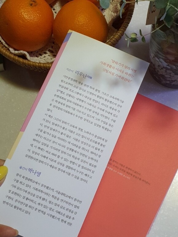이 책을 쓰신 리우난 작가는 전국 연설대회프로그램에서 대상을 받고 라디오방송 등 말하기 대회 우수한 성적을 거두며 말하기 후학 양성에 힘을 쏟고 계시네요.
