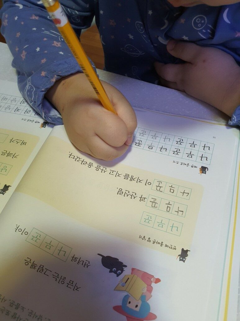솔직히 엄마 입장에선 예쁘고 또박 또박 쓰길 권하는 데 저희 아인 글씨 쓰는 걸 그리 달가워하지 않아요.