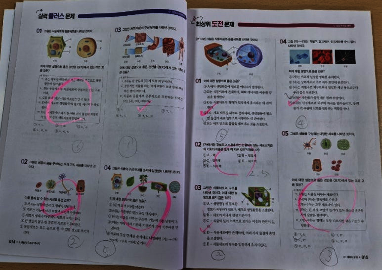 중등과학문제집으로 학습한 아이의 결과물입니다.