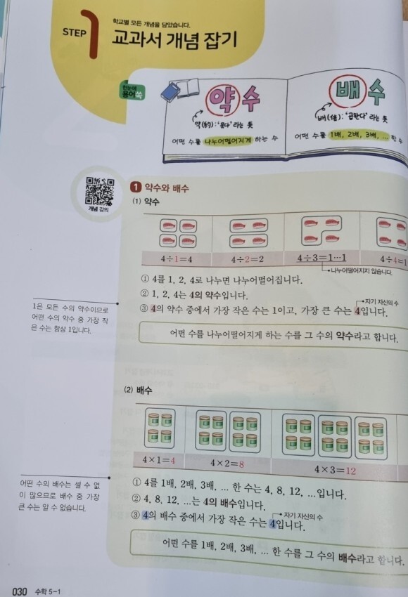 큐브수학 개념 교재는 각 단원별로 개념에 대한 설명이 그림과 함께 코멘트