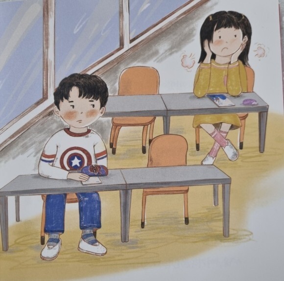 할머니에게 예쁨을 받는데 이를 묵묵히 지켜보며 자기 자신을