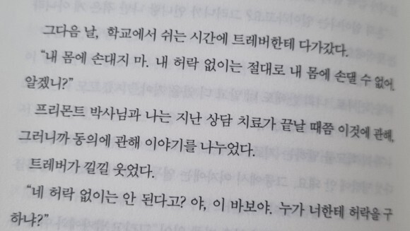 장난처럼 성적으로 괴롭히는 트레버에게 델라는 분명하게 이야기한다.