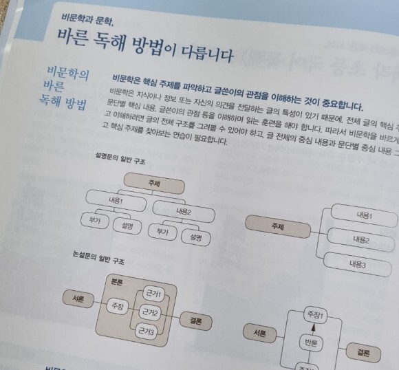 터울이 많은 큰아이가 고등학생이 되면서 뒤늦게 비문학을 배우는지