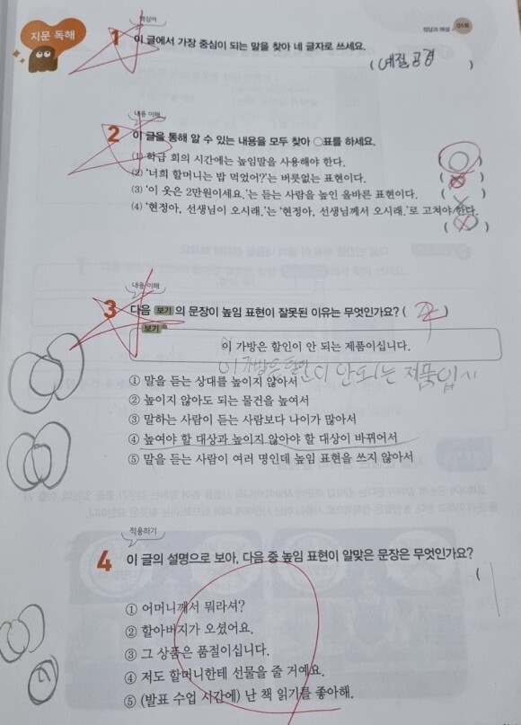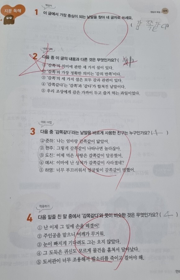 아이가 스스로 풀고 정답을 채점하니 아는 어휘가 있는