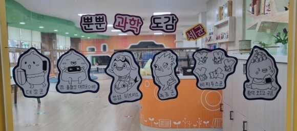 세균 캐릭터들이 자기가 어떠한 세균인지를 소개하는데 너무 귀여워요!~ 말 그대로 귀염 뽀작!~♡ 그런 세균 캐릭터들이 너무 귀여워 그림 좀 그린다는 큰딸의 도움을 받아 그려 보고 아이들이 오며가며 볼 수 있도록 가랜드 식으로 꾸며 보았어요!~ 쪼끔 부실해 보이지만 나름 열심히 꾸며 보았어요!~ 다음엔 아이들이 직접 그린 캐릭터들로 재미있게 꾸며 보면 더 좋을 것 같아요!~