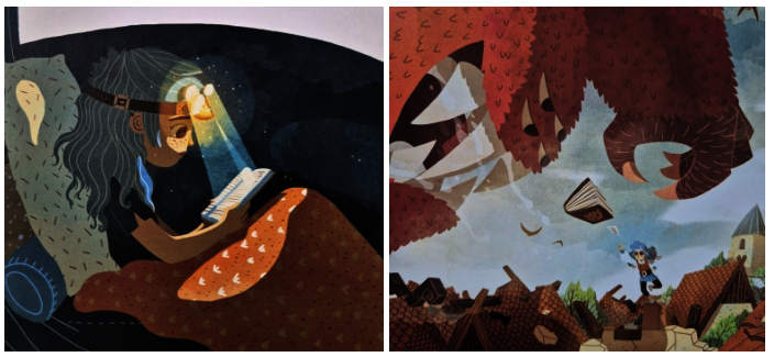 괴물이 책 읽기를 방해하자 화가 난 아이는