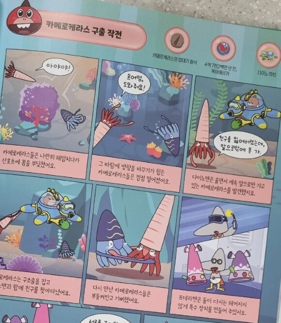 만화처럼 네모 틀에 구출 작전에 대한 이야기가
