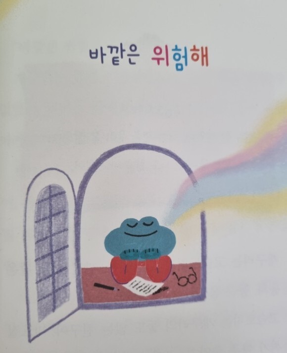 엄마의 말에 따라 문 밖으로 한발짝도 나가지 않는 개구리~
