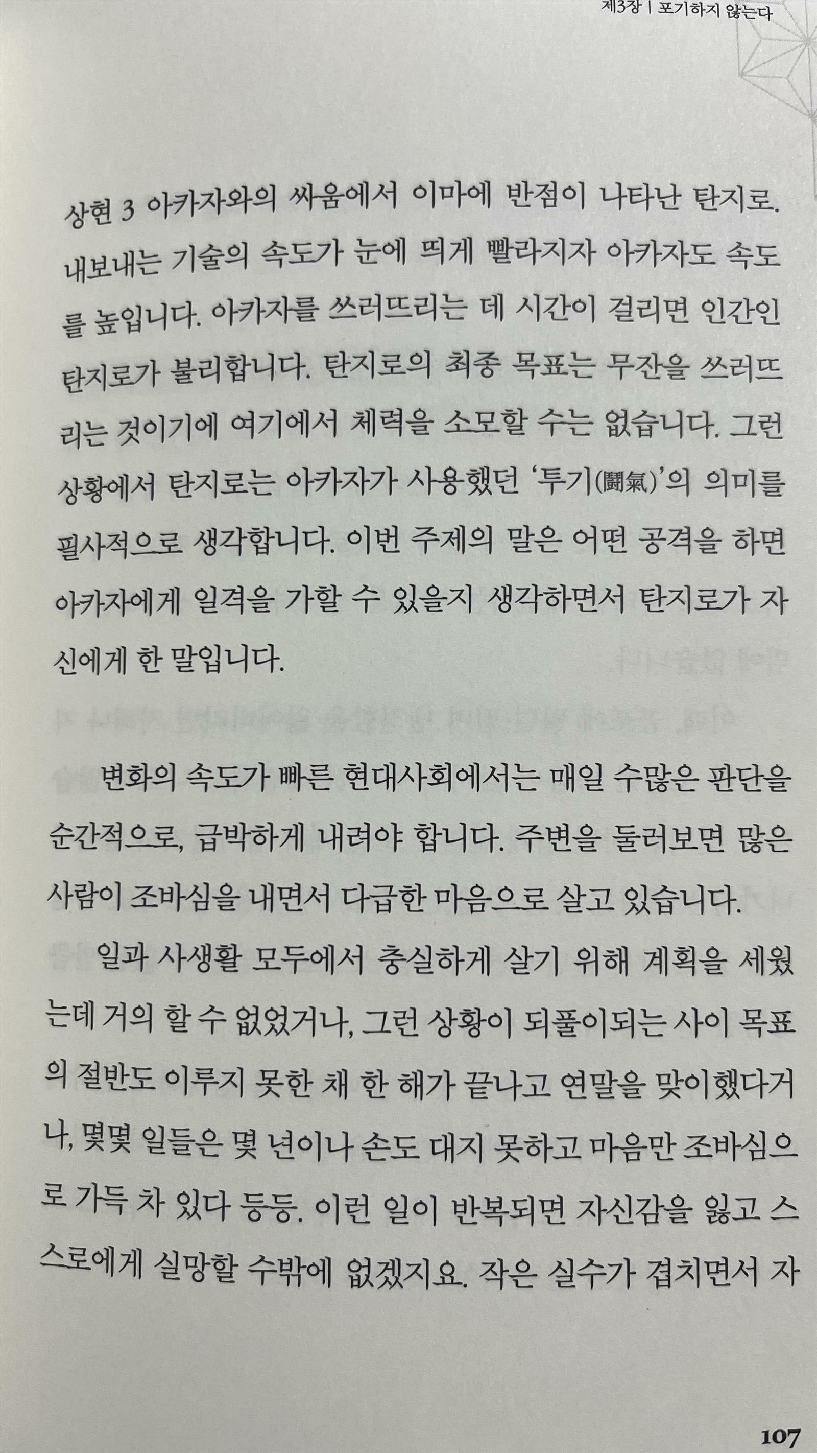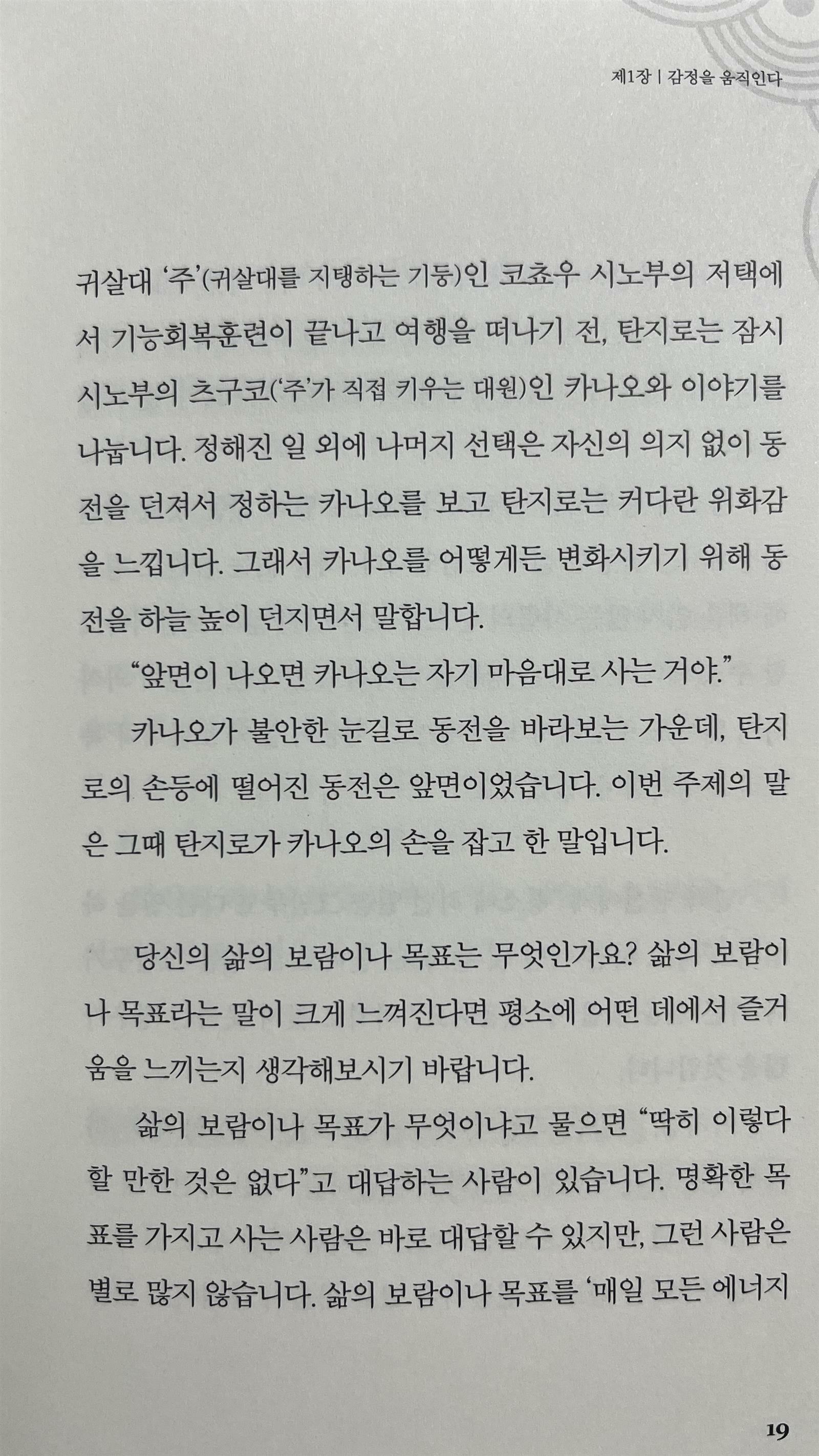 책 후반부로 갈수록 내가 애니에서 보지 못한 장면들이 나온다. 지금 나오고 있는 귀멸의 칼날 시즌 4와 만화에 나온 명대사를 통해 우리는 쉽게 꺾이지 않는 힘을 얻을 수 있다.