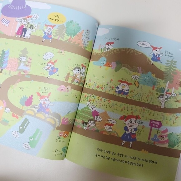 언덕은 넘고, 꽃밭을 지나, 다리를 건너 마트로 가요.