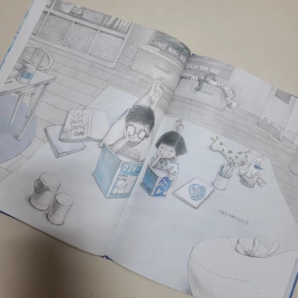 쉬는 날 그냥 쉬고 싶은 아빠와 마냥 놀고 싶은 아이의 모습 꼭 저희 집을 보는 것 같은 그림책이에요.