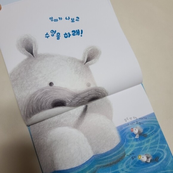 하지만 아기 하마는 엄마에게 수없이 들은 수영하는 법이 계속 생각이 나요.