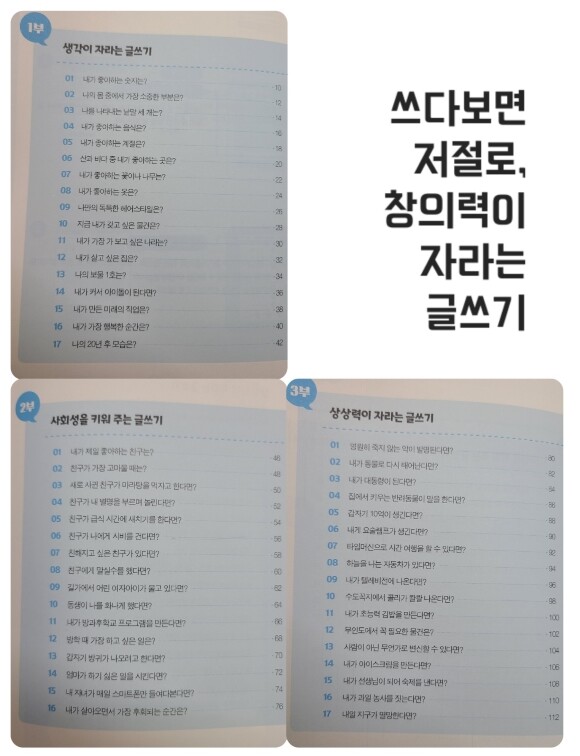 로 구성 되어 있으며, 각 16~17가지의 글쓰기가 있어요.