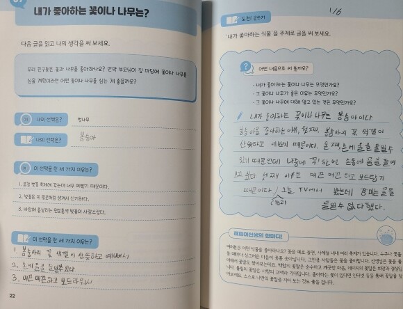 막연히 집에서 여백의 공책이나 노트에 글쓰기 해보자 하고 하면 어려울텐데, 이 책은 친절하신 해피이선생이 예시도 알맞게 주었어요. 그래서 예시에 맞추어 쓴다면, 도전! 글쓰기도 쉬워요.
