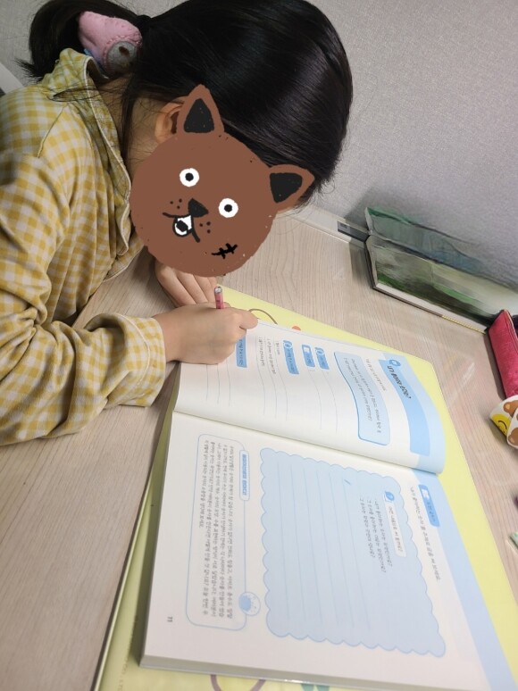 집중해서 쓰고 있어요. 얼마 지나지 않아 엄마 다 썼어 라고 뿌듯하게 보여줍니다.