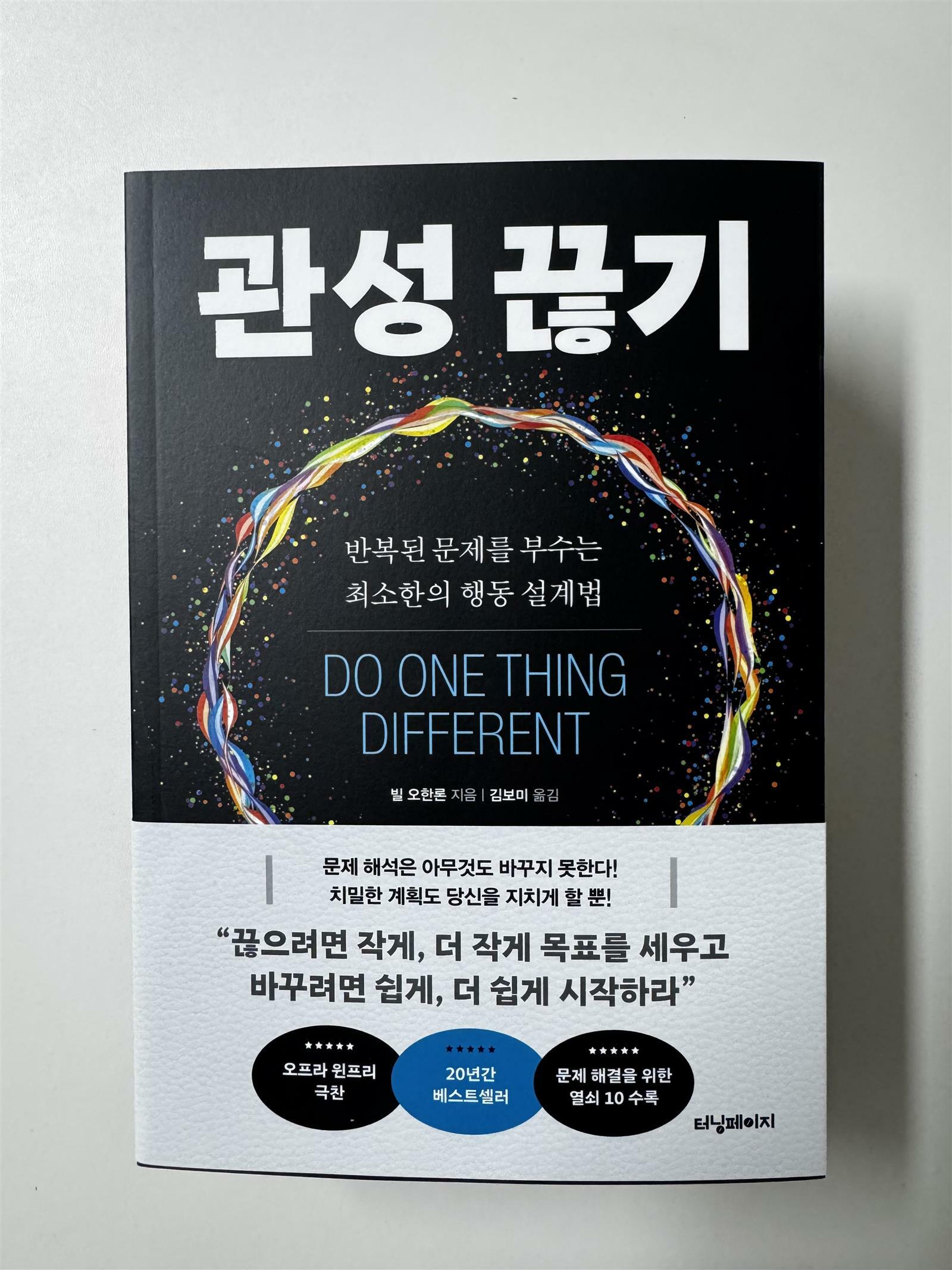 • 문제는 반복되는 행동 패턴(관성)에 있으며, 이를 끊기 위해 '하나' 다르게 행동하라(Do One Thing Different)는 실용적 접근.