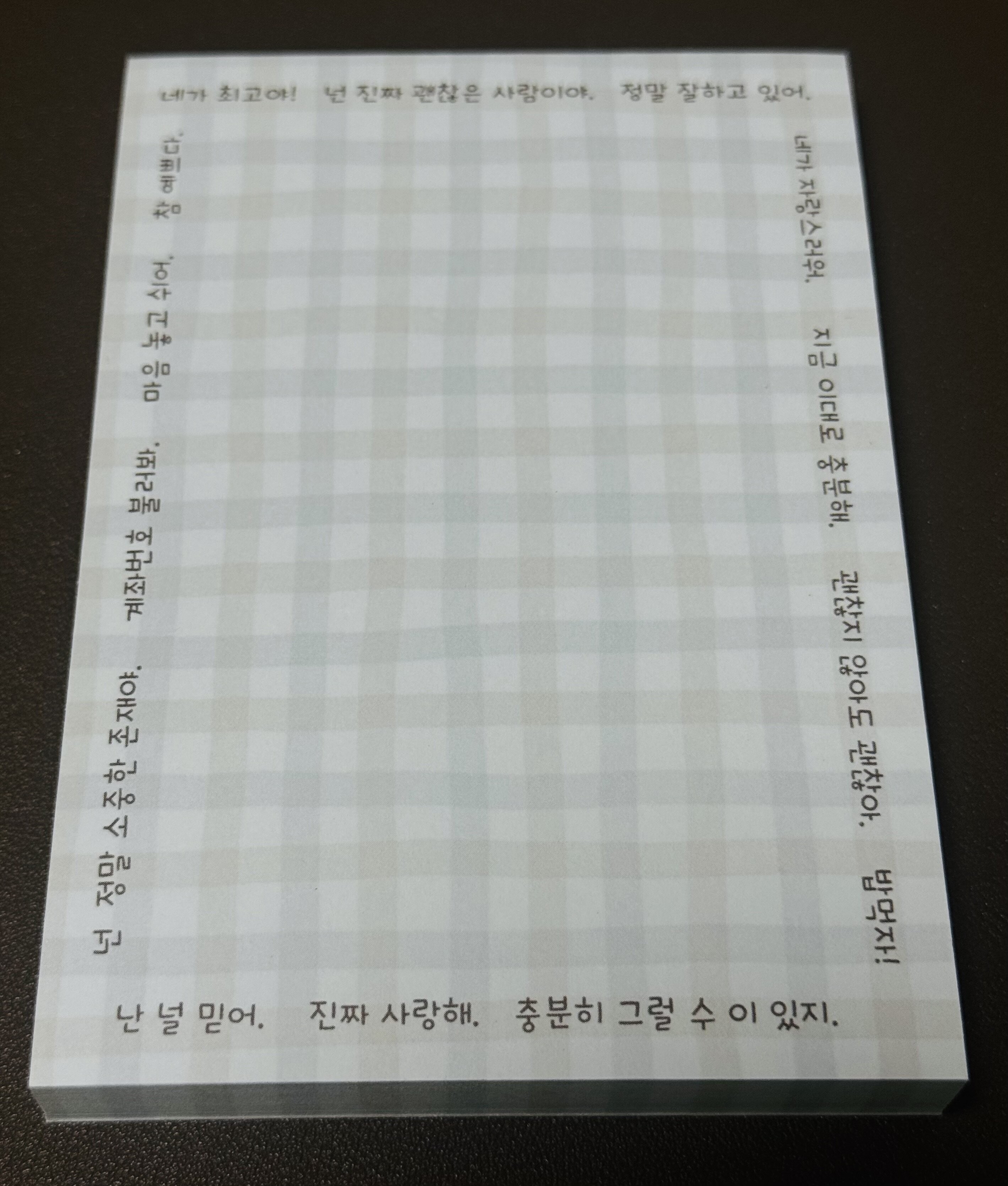 주변에 격려가 필요한 소중한 사람들에게 간단한 메시지를 적어 건네면 '격려'가 될거라는 의미로 보입니다.