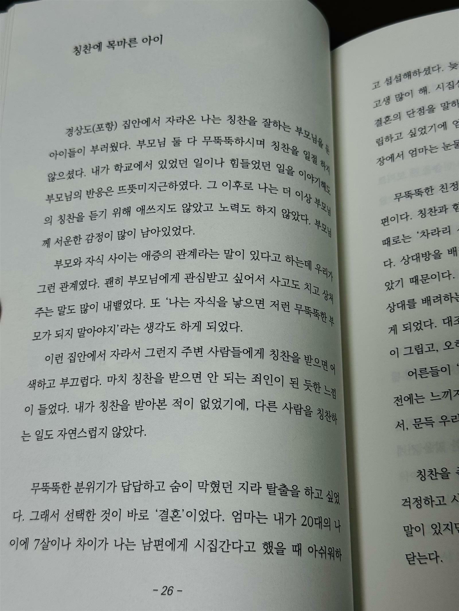 칭찬에 목마른 아이였다는 부분이 저랑 비슷한 점도 있었고