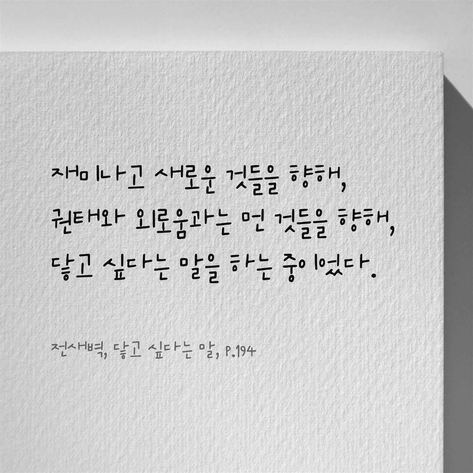 그런데 요즘은 에세이가 편해졌다. 생각이 많아서 어쩔 줄 모를 때 오히려 더 찾게 되는 것 같다. 가볍게 슝슝 읽기 좋달까? 요즘 에세이는 막 거창한 말이 없다(이 또한 지극히 개인적인 생각이지만). 그저 작가님들의 경험과 그 때의 생각들을 적어 놓으셨을 뿐. 그 글을 읽고 공감하고 위로를 받는 것은 오롯이 나의 역할이다. 이젠 이렇게 생각한다. 굳이 거창한 말을 하지 않아도, 대놓고 위로와 격려를 해주지 않아도, '아, 나도 그런데.'라는 생각이 들게 하는 것. 그 생각 자체가 내게 위로가 된다는 것. 그것이 에세이의 힘이 아닐까.