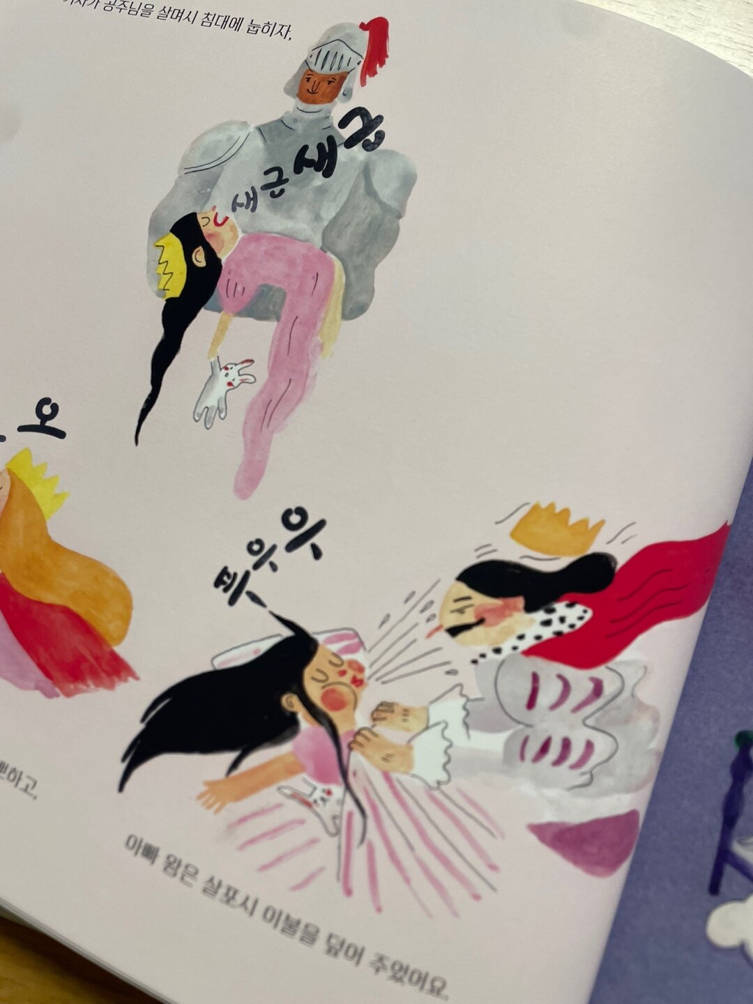 이 책에서는 공주님이 기사까지 이겨내며 자기 의지를 굽히지 않는 반전이 들어 있어 아이도 재미있어했어요.