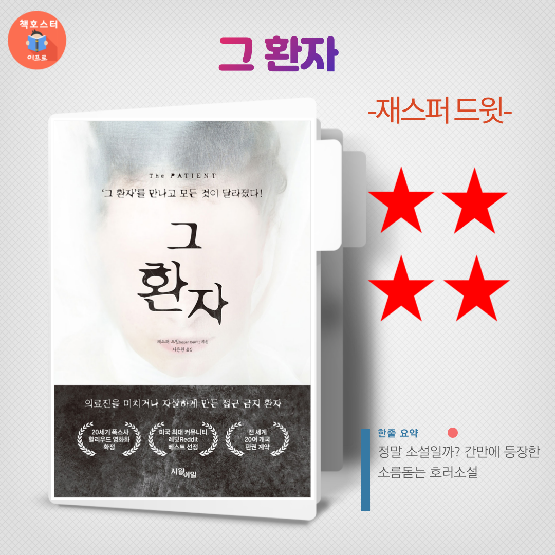 이 책 <<그 환자>> 도 이런 페이크 다큐 무비와 동일 선상에 있는 호러 소설입니다.