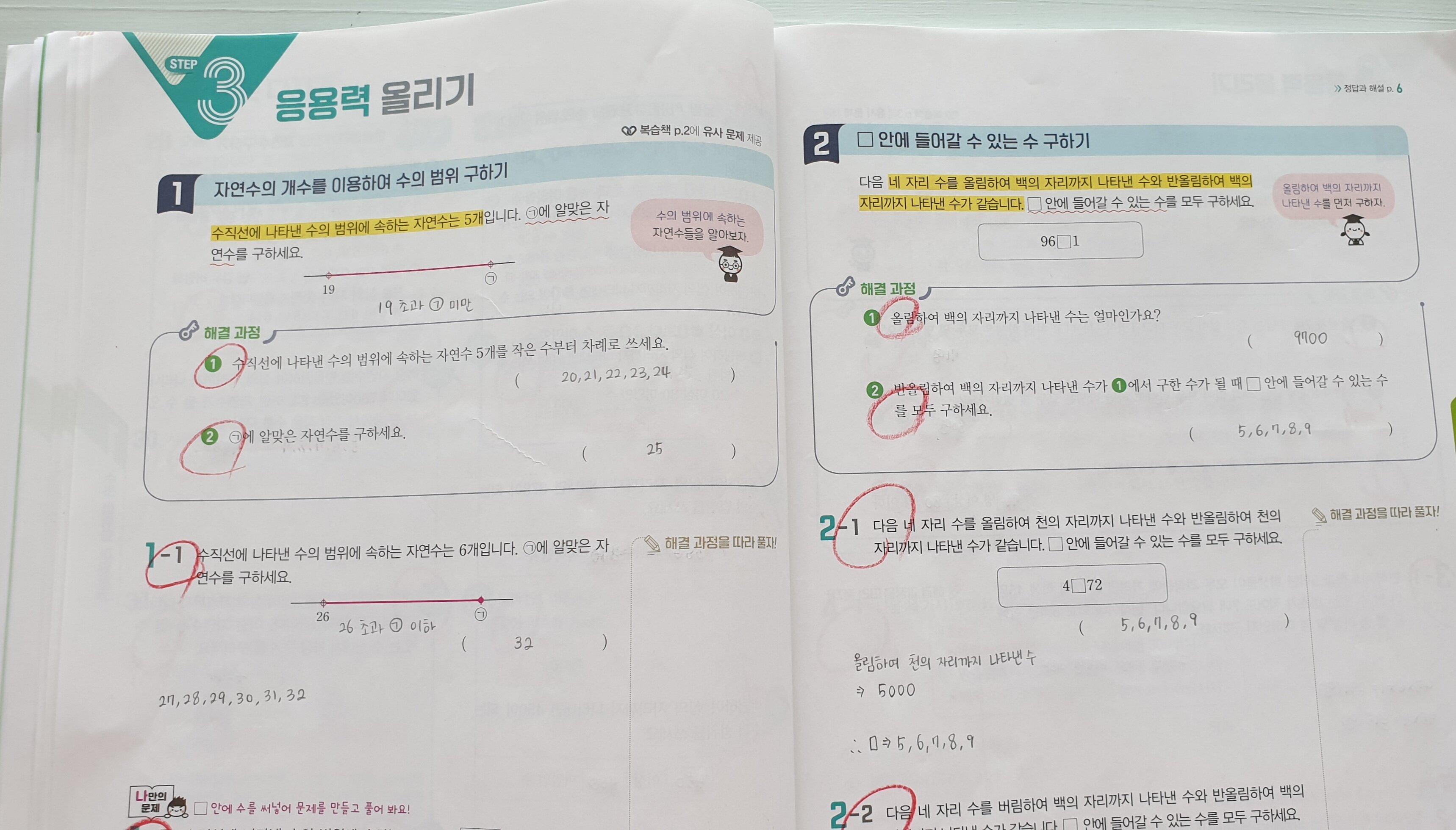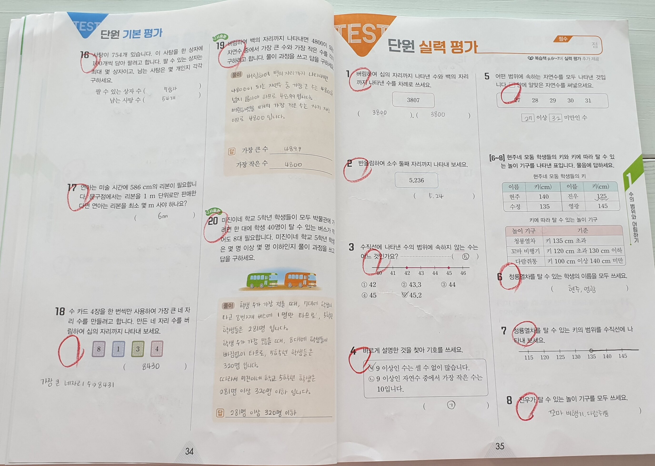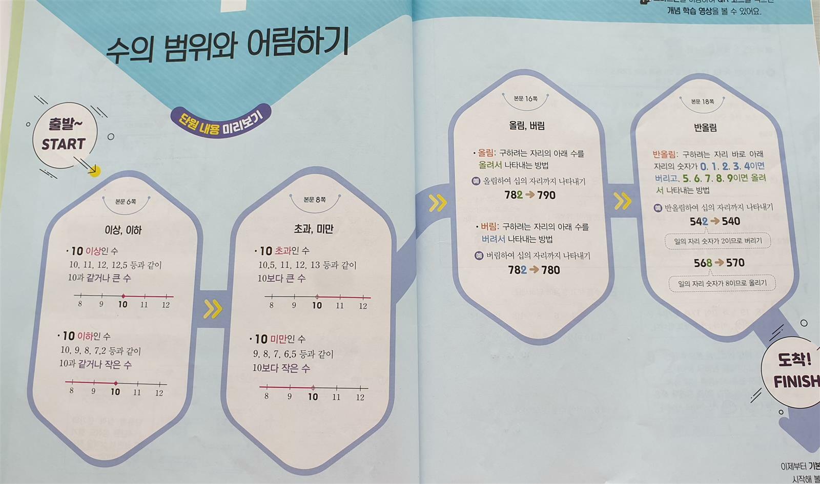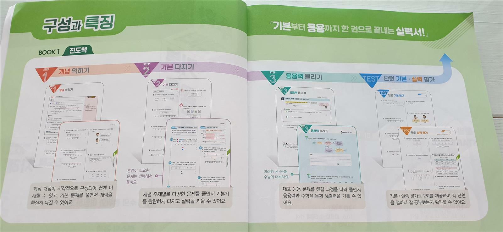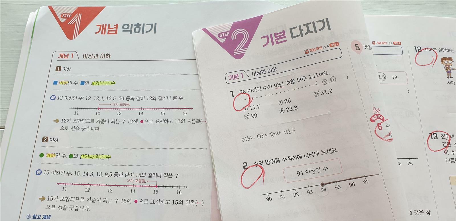 초등고학년 수학은 더 기초를 탄탄히 해야 앞으로 6학년,중등,고등까지 순탄할 것이기 때문에 초등수학의 꽃인 5학년 수학을 잘 해놔야 하는 이유이지요. 우리집 남매둥이 첫째 펭귄이가 5-2학기 초등수학 해결서로 픽한 문제집은 바로 수학리더 기본+응용입니다. 구성은 진도책+복습책+정답지 로 되어있지요 진도책은 5학년수학부터는 어려워지는 만큼 개념을 확실히 익히고 기본다지기,응용력올리기,단원(기본,실력)평가 까지 어느 것 하나 놓치지 않았네요 복습책은 응용력을 강화시키고 단원별 실력을 점검할 수 있도록 평가문제를 수록해놓았습니다. 수학리더 기본+응용 5-2 차례를 살펴볼께요~ 총 6단원으로 이루어져있네요. 1.수의 범위와 어림하기 2.분수의 곱셈 3.합동과 대칭 4.소수의 곱셈 5.직육면체 6.평균과 가능성 제가 꼽는 수학리더의 가장 큰 장점은~~~ 단원 내용 미리보기 이지요~^^♡ 무작정 첫장 펴놓고 개념 부터 읽어봐라 하는거보다 이렇게 한장으로 공부할 단원 내용을 요약 정리해서 보여주니 아이가 뭘 공부할 지 길잡이 역할이 톡톡히 되는 거 같아요.~^^ 너무 일목요연하게 표로 정리해주니 아이와 함께 보며 단원 맛보기를 하면서 워밍 업하기 딱 좋답니다.. 역시 천재교육 천잰데요^^ 최고 !!!!! <QR코드를 활용한 개념학습 영상> 단원시작마다 큐알로 보는 개념 학습영상을 통해 개념 설명을 들을 수 있답니다. <진도책> 1.개념익히기 핵심개념을 박스구성으로 정리하고 쉽게 이해하고 개념을 다질 수 있도록 기본 문제로 구성되어 있습니당. 2. 기본 다지기 개념 주제별 문제풀기를 통해 기본기를 탄탄히 할 수 있지요. 실력+ => 훈련이 필요한 문제는 반복해서 풀도록 구성! 역시 센스돋지요^^ 펭귄이는 올림/버림하기 전의 수의 범위 구하기를 헷갈린 모양이예요. 비슷한 유형 문제를 반복하면서 확실히 알게 되었어요. 3.응용력 올리기 문제의 중요 문장에 형광 표시를 해줌으로서 문제 이해도를 높여주었네요~ 또한 해결 과정을 따라 풀어 보면서 응용력/ 문제 해결능력을 키울 수 있답니다. *서술형문제풀기를 통해 서술.논술형 수능을 미리 대비해 볼 수 있겠네요! 4.단원 기본 평가와 단원 실력 평가 [복습책] 응용력 강화 문제와 실력평가 문제 수록으로 단원 말미에 실력 체크를 해 볼 수 있는 부록 문제집입니다. [총 평] 수학리더 기본+응용 5-2 1단원을 풀어보았는데요~기본 응용 교재이니 만큼 기본기를 탄탄히 하면서 다양한 응용문제와 서술형 문제를 풀어보고 마지막에는 실력 평가까지... 이 한 권으로 단원을 마무리짓기에 부족함이 없다는 걸 확신할 수 있었답니다. 기본부터 응용까지 꽉 잡는 실력서는 역시 수학리더!! 펭귄이의 5-2학기 수학은 수학리더 기본+응용이 꽉 잡아 주겠어요 수학리더와 함께 초등수학 꽉 잡아 보실래요? ♡♡♡ [본 교재는 천재교육으로부터 제공받고 아이가 직접 풀어 본 후 엄마가 채점하고 쓰는 솔직한 후기입니다]
