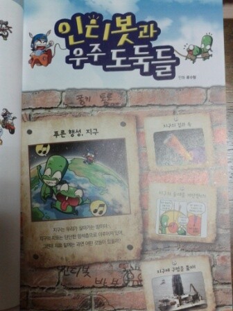 책 표지는 소프트커버로 되어 있고 ,지구 사진과 함께 책속에 나오는 캐릭터들이 그려져 있어 아이들이 궁금해서 얼른 책을 읽어보고 싶은 마음이 들게 하는대요.^^
