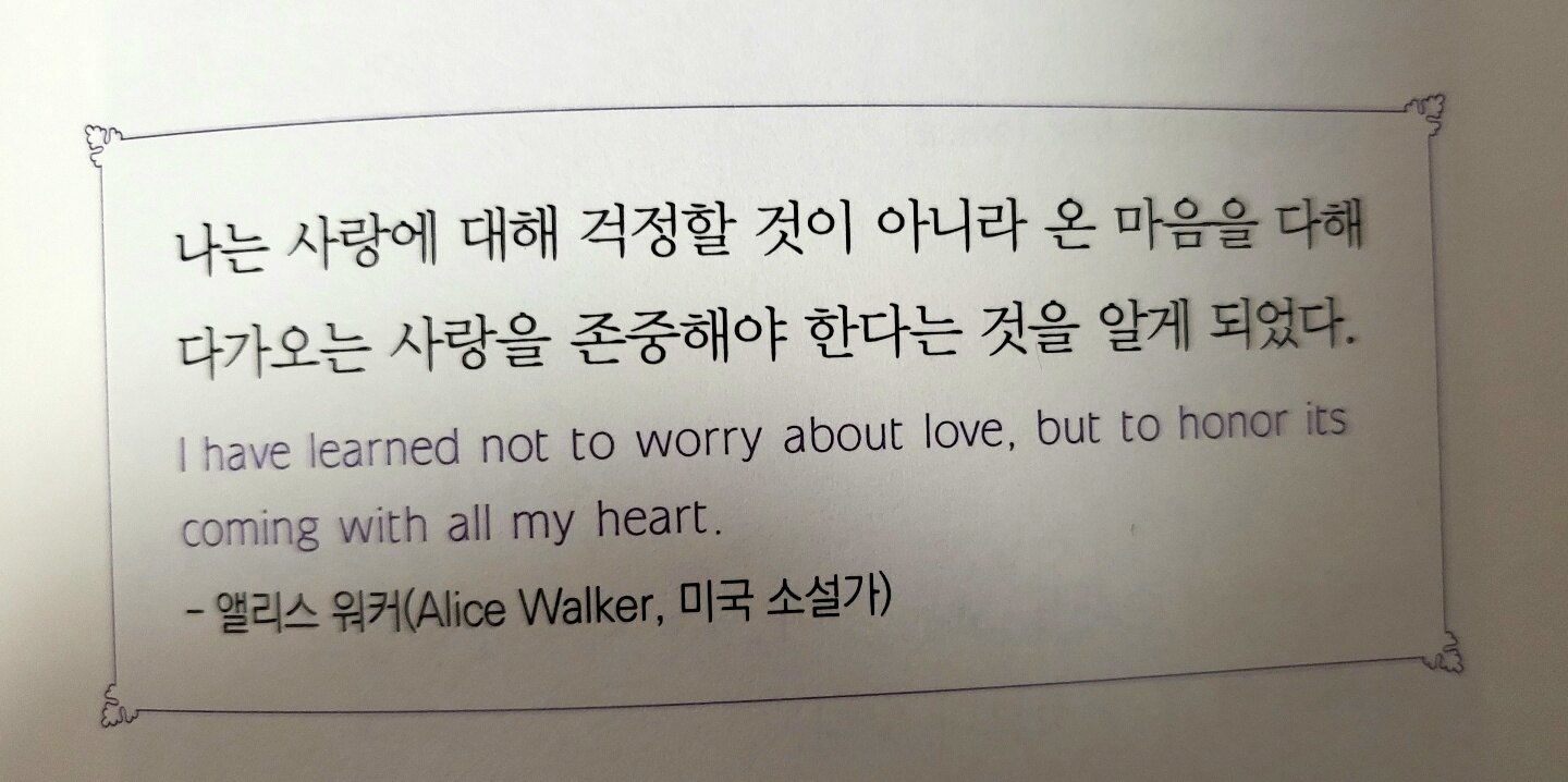 '모든 것'을 받아들이고 조절하려면 '평생' 수련해야 한다는 말에 다시 겸손해진다. 모든 것을 받아들이는 것이 얼마나 힘든 일인데, 그걸 단시간에 하려 하고, 해 내지 못하는 나 자신을 마주하며 못견뎌한 내가 참으로 작게 느껴진다. 나의 그런 나약하고 어리석은 모습을 마주하는 것이 진정한 '수련'의 시작임을 깨닫는다.