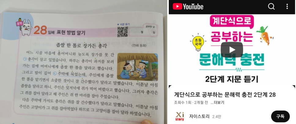 또한 지문듣기 QR코드를 통해 유튜브로 지문을 직접 듣고