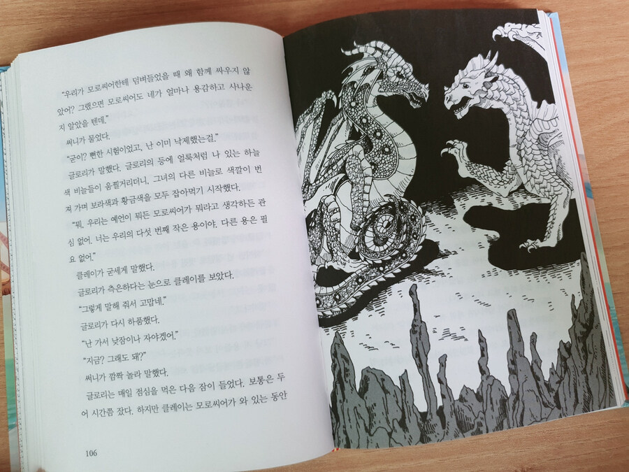 <불의 날개>는 예언과 어린 다섯 용들이 모험을 통해 성장을 담은 이야기라고 한 줄 평을 할 수 있어요