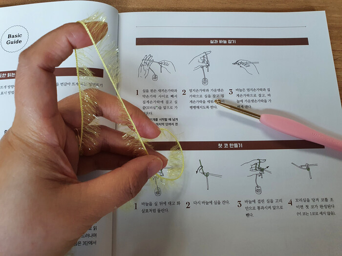 처음은 굵고 매끈한 실로하는 게 도움이 될 거 같아요